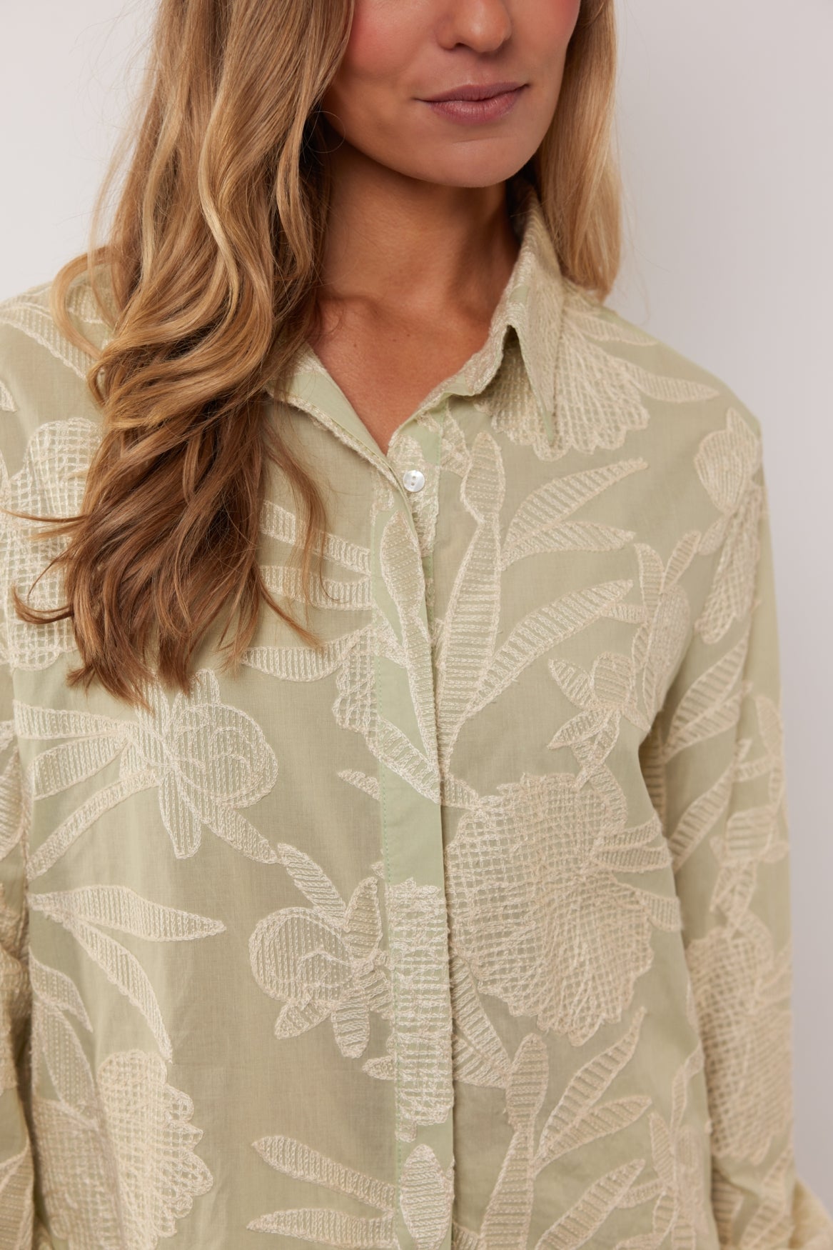 De Kimberly blouse brengt verfijning en vrouwelijkheid samen in een stijl die moeiteloos aansluit bij een moderne, vrouwelijke garderobe. De blouse is uitgevoerd in een luchtige kwaliteit met een rijke ingeweven bloemstructuur die zorgt voor diepte en een luxe uitstraling, terwijl het klassieke silhouet een mooie balans creëert tussen elegantie en draagbaarheid. De subtiele transparantie en zachte afwerking geven het geheel een verfijnde touch zonder in te leveren op comfort. Draag de Kimberly blouse los voor een eigentijdse uitstraling of combineer met een nette pantalon of denim voor een krachtige look die zowel overdag als in de avond tot zijn recht komt.
