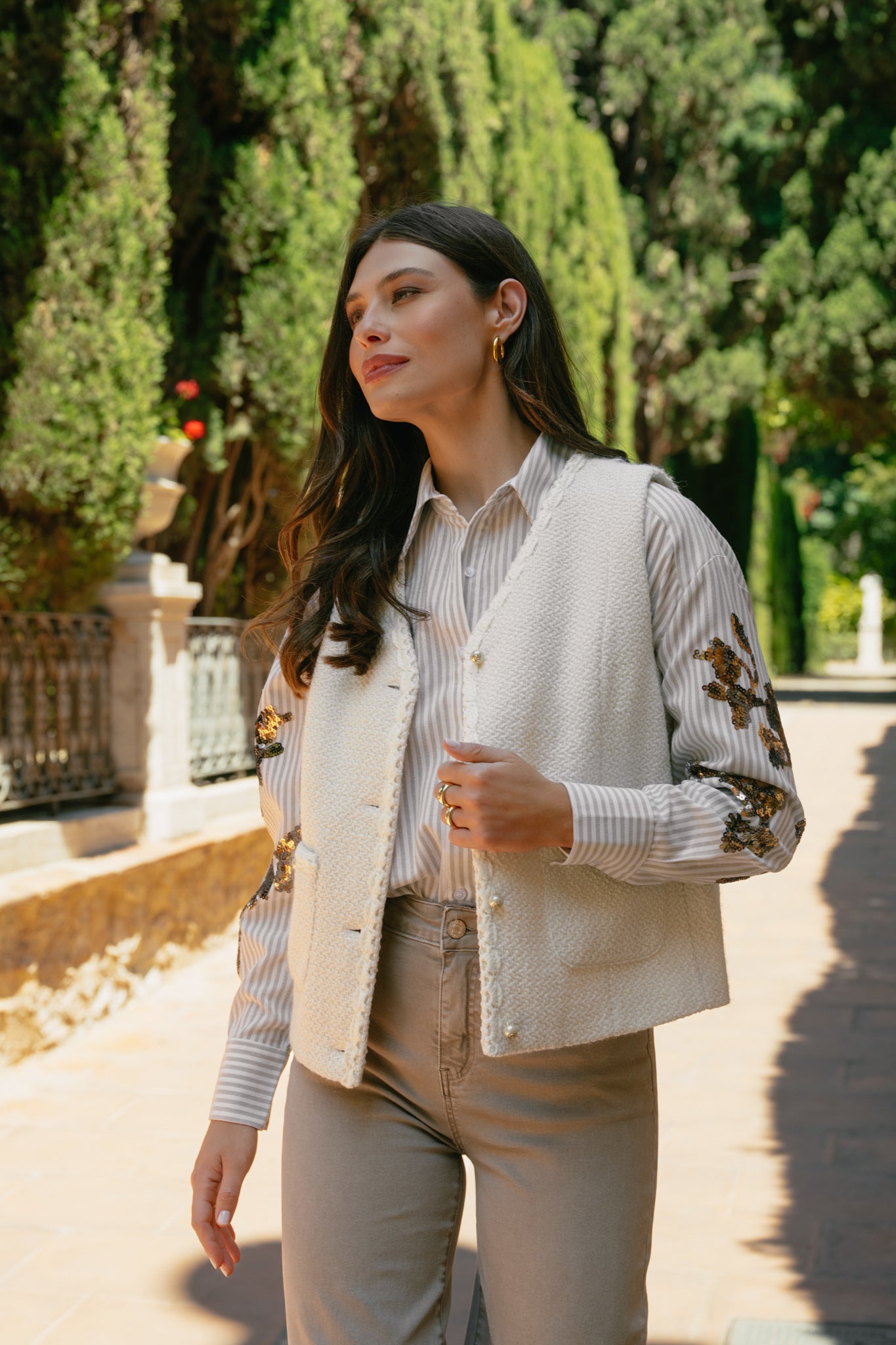 Het model is 179 cm lang en draagt een maat S. Dieser Artikel passt normal. Wir empfehlen Ihnen, Ihre normale Größe zu nehmen.