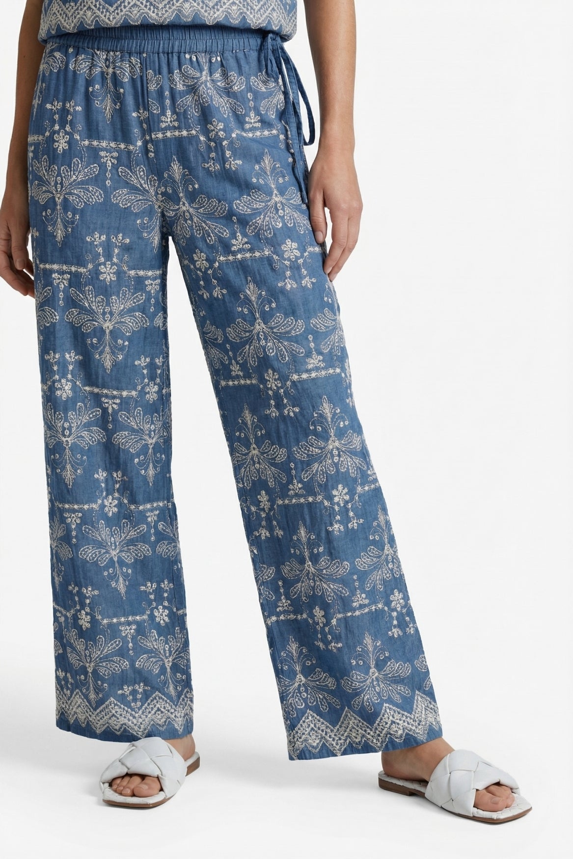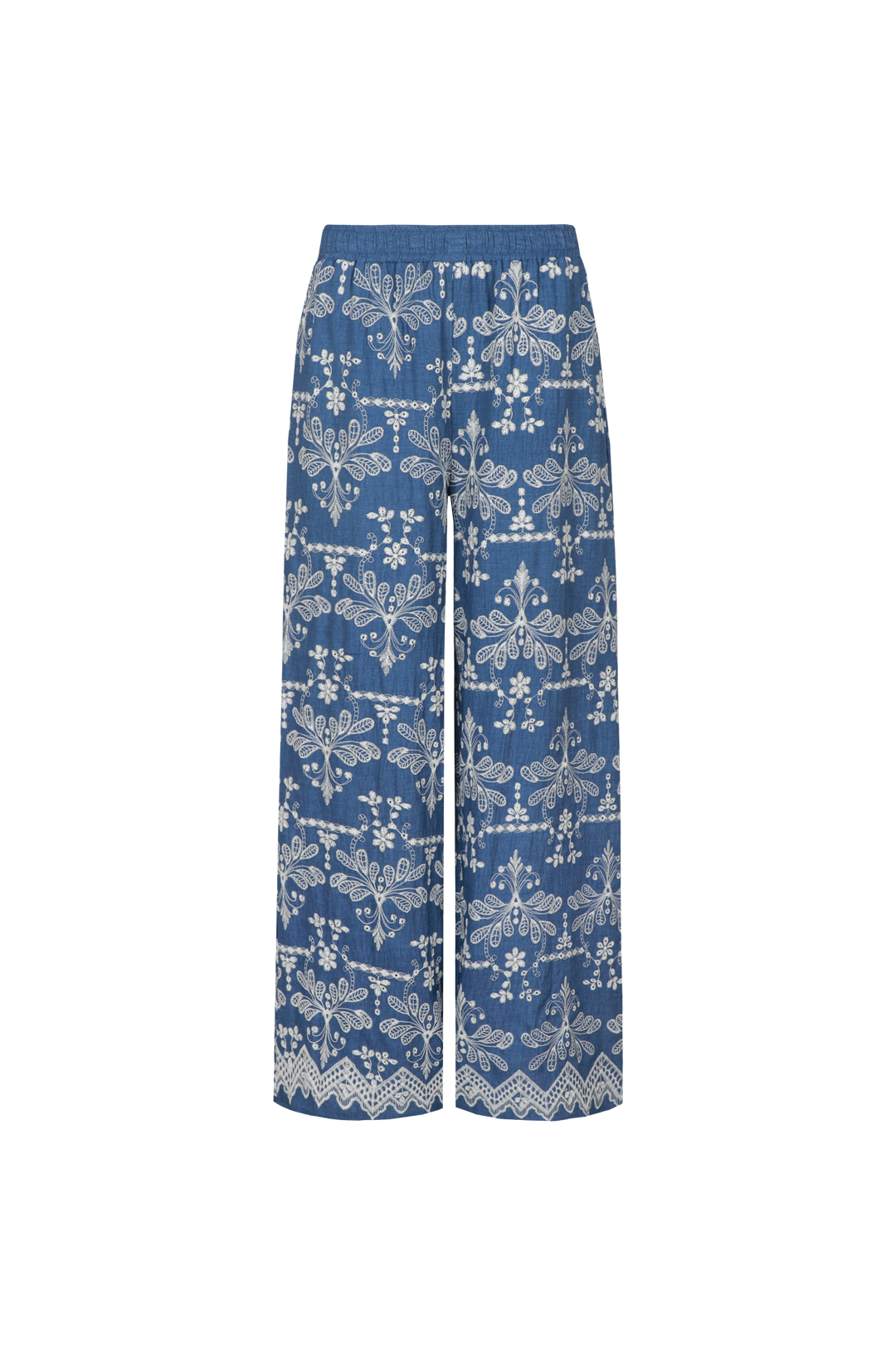Die Minou Hose hat eine lockere Passform mit weiten Beinen, die sanft am Körper entlangfallen und für eine bequeme, luftige Passform sorgen. Der elastische Bund macht die Hose leicht zu tragen. Die reiche Stickerei auf dem Denim-ähnlichen Stoff verleiht dem Design einen auffälligen und raffinierten Look. Kombinieren Sie die Hose mit dem passenden Fallon Top oder der Maeve Bluse für ein stilvolles Co-Ord-Set.