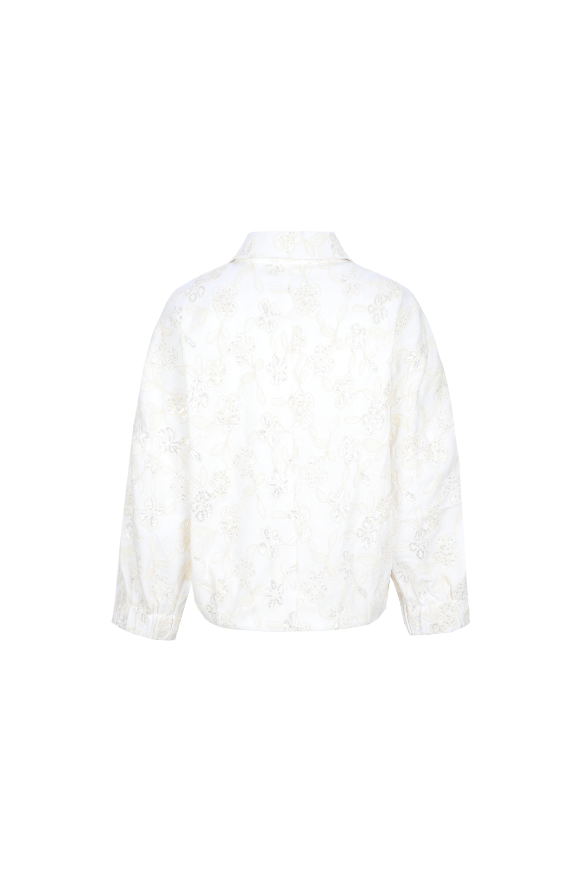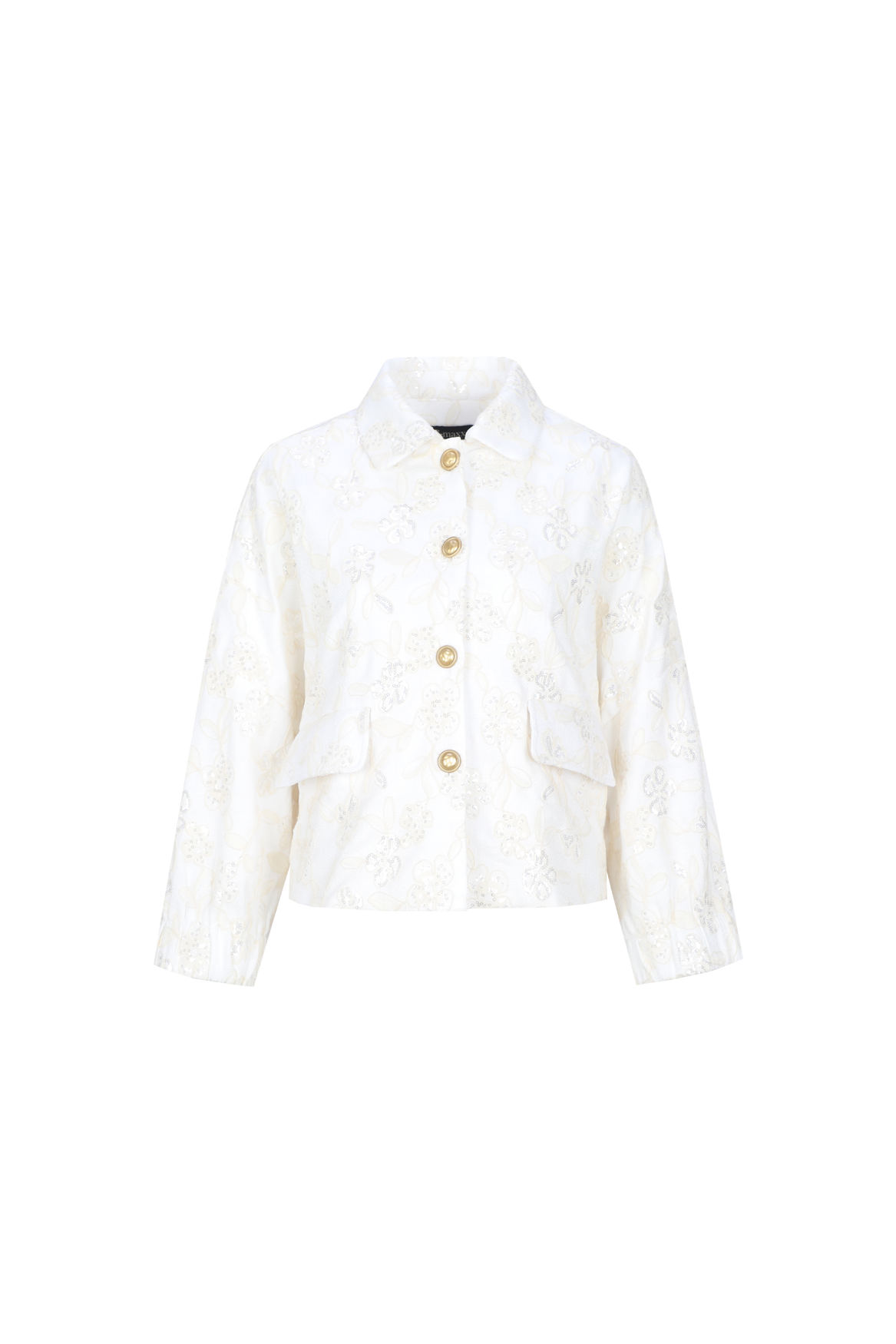 The Delara jacket is a refined piece with a feminine look. It has a straight, slightly boxy fit with a classic collar and a button closure with gold-tone buttons. The subtle floral texture in the fabric gives the jacket a luxurious and rich look. The patch pockets and slightly voluminous sleeves create a modern balance. It can be worn as a statement piece or as a complete outfit with the matching shorts.
