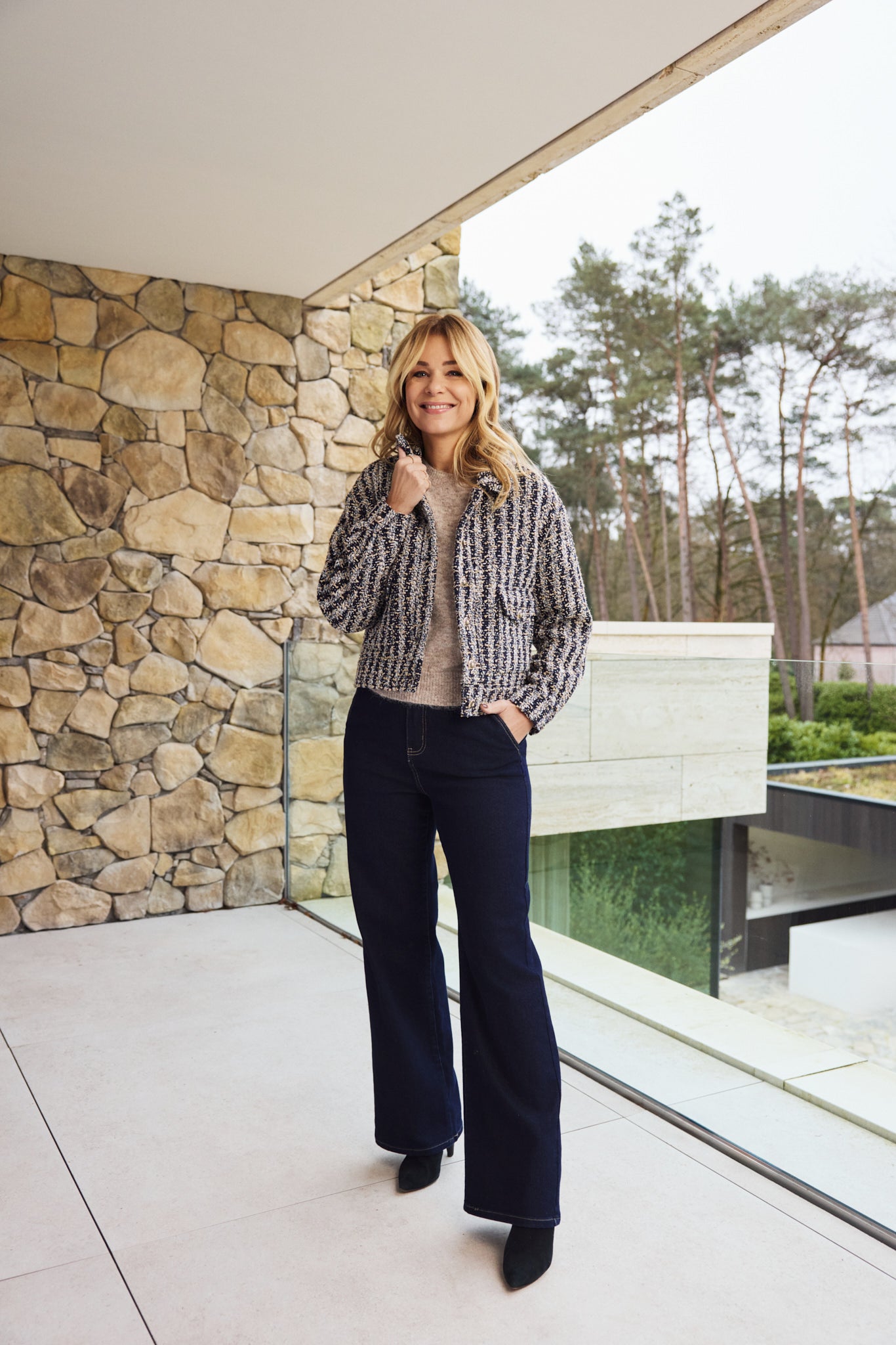 The Octavia top combines a comfortable knit with a feminine, elegant look. The short sleeves have a subtle puffed effect that adds flair, while the round neckline and straight fit make it versatile for any occasion. Perfect with jeans or a skirt for a casually chic look. A personal favorite of Froukje's from her collection.