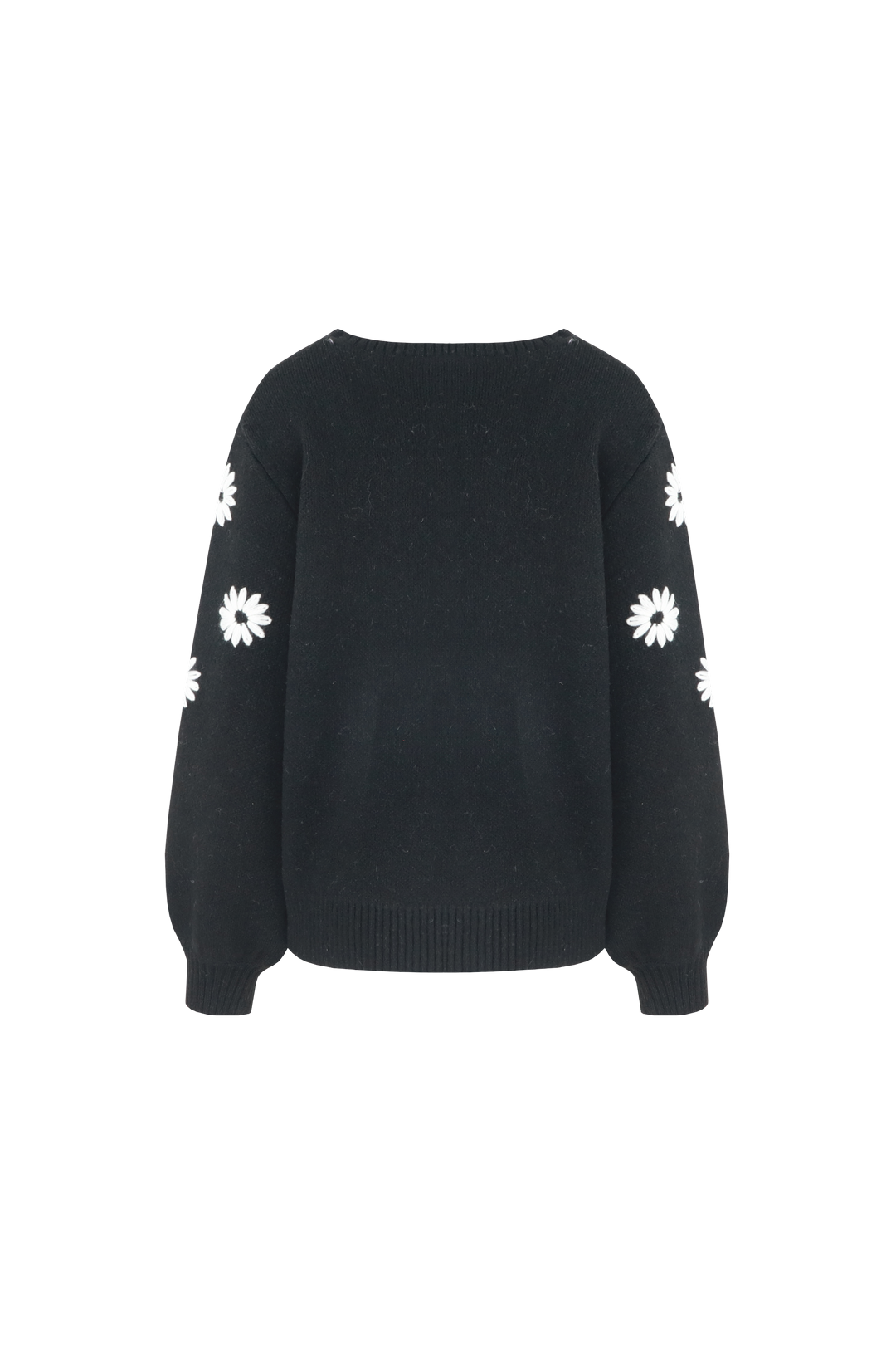 De Zaina trui brengt speelsheid en comfort samen in één item. Met de opvallende bloemenprint en de ballonmouwen heeft deze knit een vrolijke en vrouwelijke uitstraling. De zachte stof maakt de trui heerlijk draagbaar, terwijl de zwarte basis het item makkelijk te combineren maakt. Perfect voor een casual-chic look met een twist!